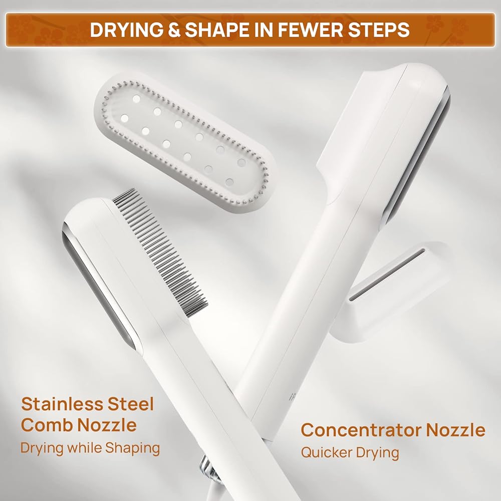 تصميم 2 في 1: يمكن لمجفف العناية بالكلاب المحمول هذا المزود بمشط من الفولاذ المقاوم للصدأ إزالة الشعر المتشابك والتشابك بسهولة من فراء حيوانك الأليف أثناء التجفيف. فوهة المكثف مخصصة للتجفيف بشكل أسرع بعد الاستحمام والمسح.