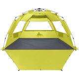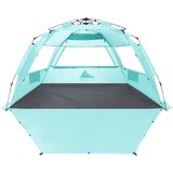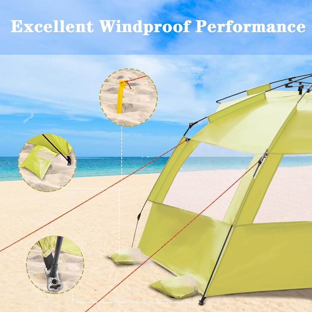 سهولة الإعداد مع تصميم الخيمة المنبثقة المبتكر - آلية الظهور السريعة تسمح بالإعداد في ثوانٍ! إما الضغط على المقابض الرمادية أو سحبها لفتح خيمة الشاطئ أو طيها بسهولة على التوالي. هذا أبسط بكثير وأسرع من خيام الشاطئ الأخرى ذات الرباط!