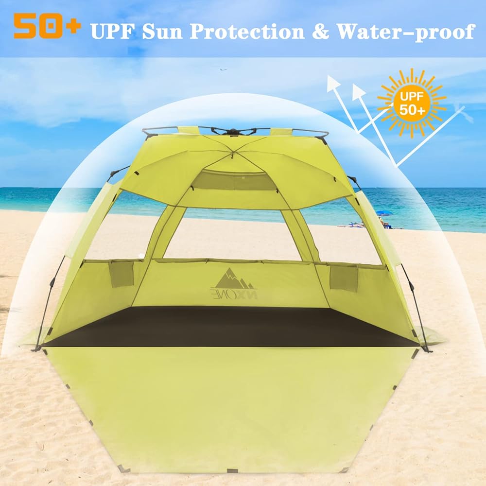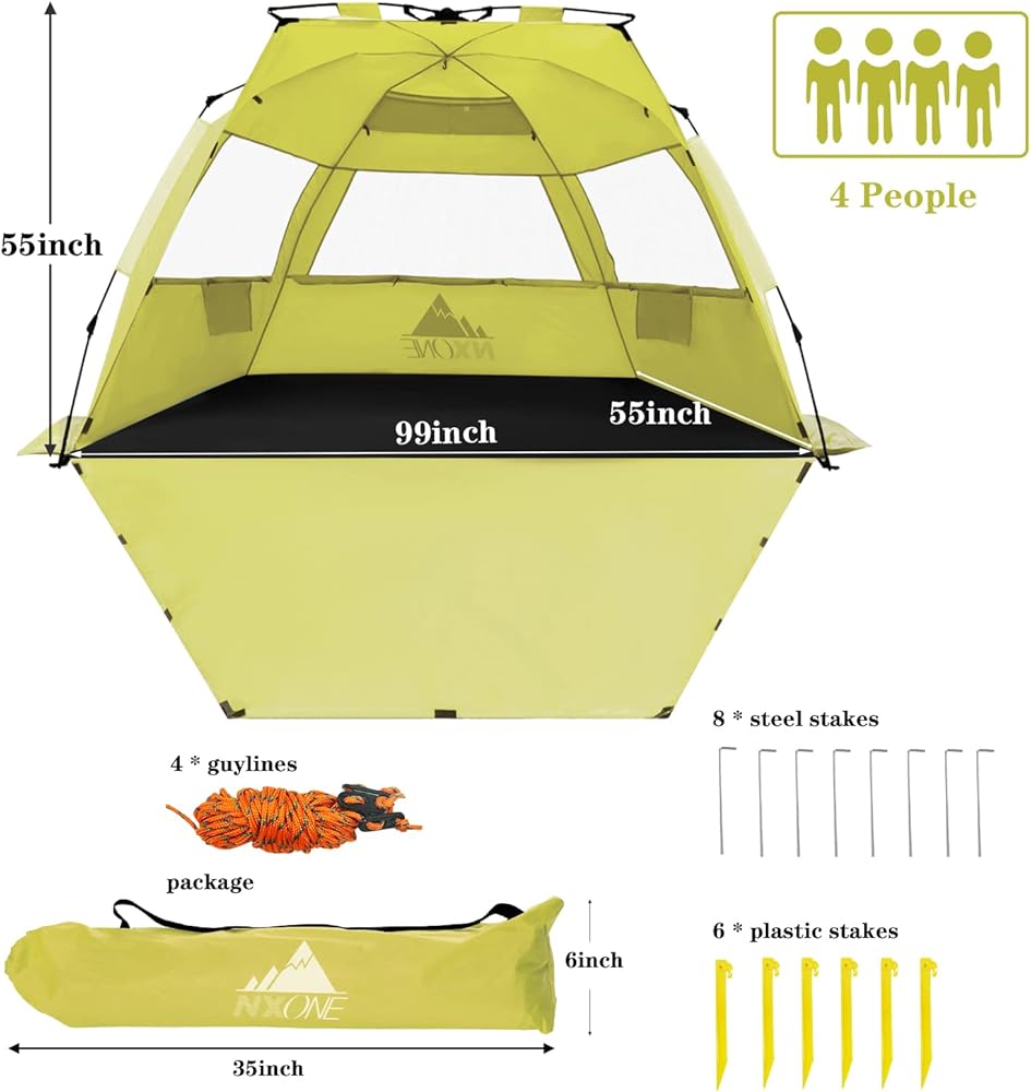 تصميم مساحة كبيرة جدًا - أحدث خيمة شاطئ NXONE مع ترقية الحجم إلى 99 عرضًا × 59 طولًا × 55 ارتفاعًا، ومساحة كافية لشخصين بالغين وطفلين، وهي أكبر من معظم الخيم الموجودة في السوق! يمكنك الحصول على مساحة أكبر بسعر أقل!