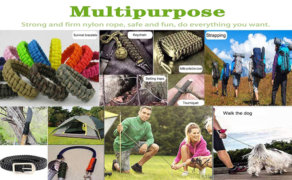 • 【حبل بقاء متعدد الوظائف】تم تصميم حبل باراكورد 550 متعدد الأغراض خصيصًا للحرف اليدوية، وأساور باراكورد/النجاة، والحبال، والأحزمة، ورافعات البندقية، ولفائف المقبض، وتأمين معداتك، ووضع الفخاخ، وربطات العنق، والتخييم، إلخ. يجب أن يتوفر حبل باراكورد بطول 100 قدم للتخييم والمشي لمسافات طويلة والصيد ورحلات القوارب.