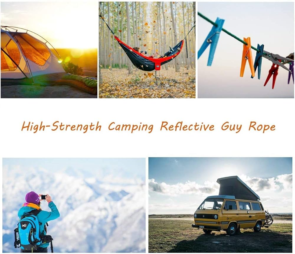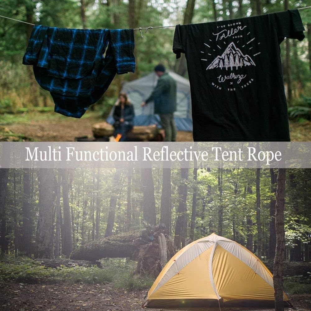 • 【طويل ومتعدد الاستخدامات】طويل بما فيه الكفاية بطول 100 قدم، وقطر 5/32 بوصة، هذا الحبل العاكس للخيمة مثالي للاستخدام في الداخل والخارج لتزويدك بحبل النجاة الذي يمكنك الاعتماد عليه في أي موقف.