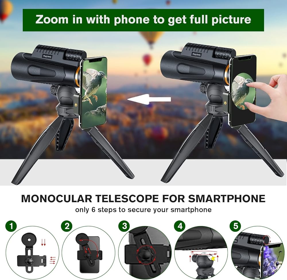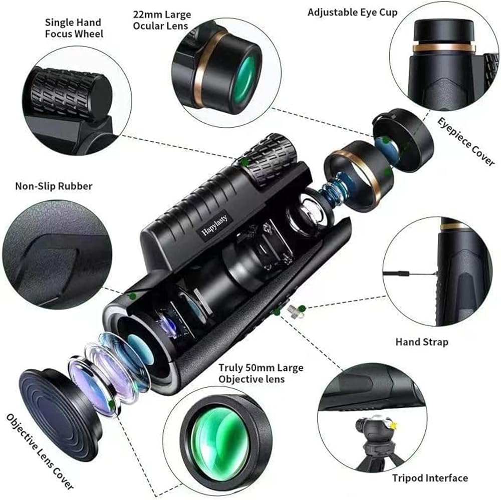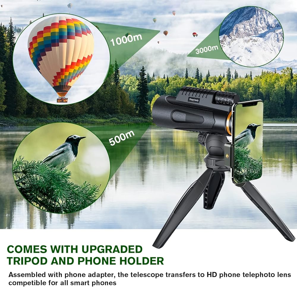 تلسكوب احادي العين HD 12×50 مع محول هاتف ذكي من هابيلاستي مع حامل ثلاثي مطور عالي الطاقة مع رؤية واضحة منخفضة الاضاءة للبالغين، منشور FMC BAK4، معدات لمشاهدة الطيور