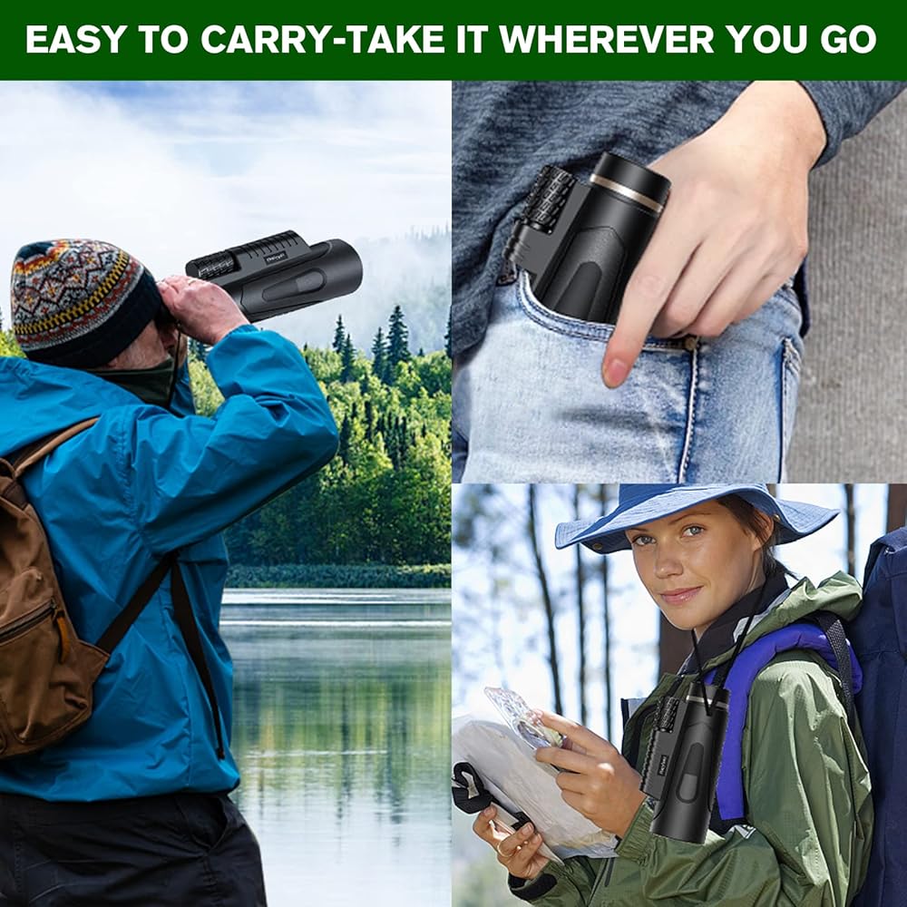 تركيز بيد واحدة ومقاومة للماء بدرجة IPX7 - يمكنك رؤية المناظر الطبيعية بسهولة وسرعة عن طريق عجلة تركيز واحدة قابلة للتعديل يدويًا حتى ترى صورة واضحة ومشرقة. منظار أحادي مع مواد مقاومة للماء عالية الجودة، طلاء ممتاز مضاد للضباب وبصريات تمنع الضباب والماء والغبار.