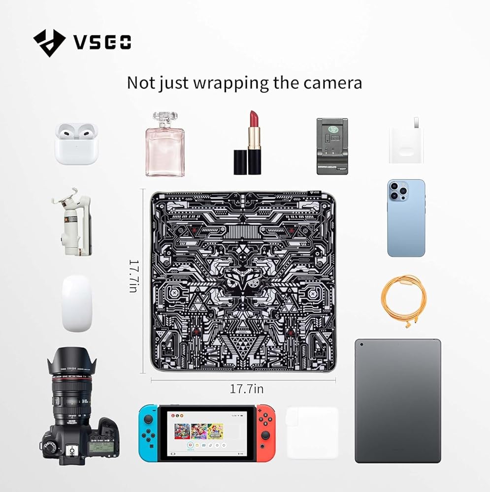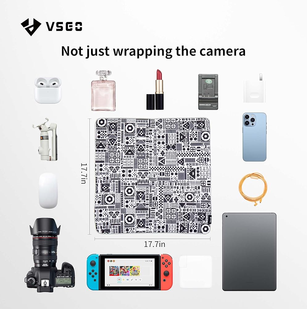 【Versatile】:The 17.7inch*17.7inch square wrapping cloth can be used to wrap cameras, lenses, iPads, notebooks and other items, and can be folded freely without restriction.