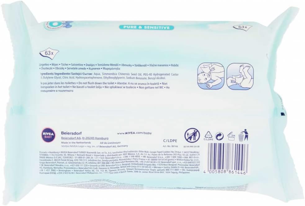 مناديل مبللة نقية للبشرة الحساسة من نيفيا بيبي 63x