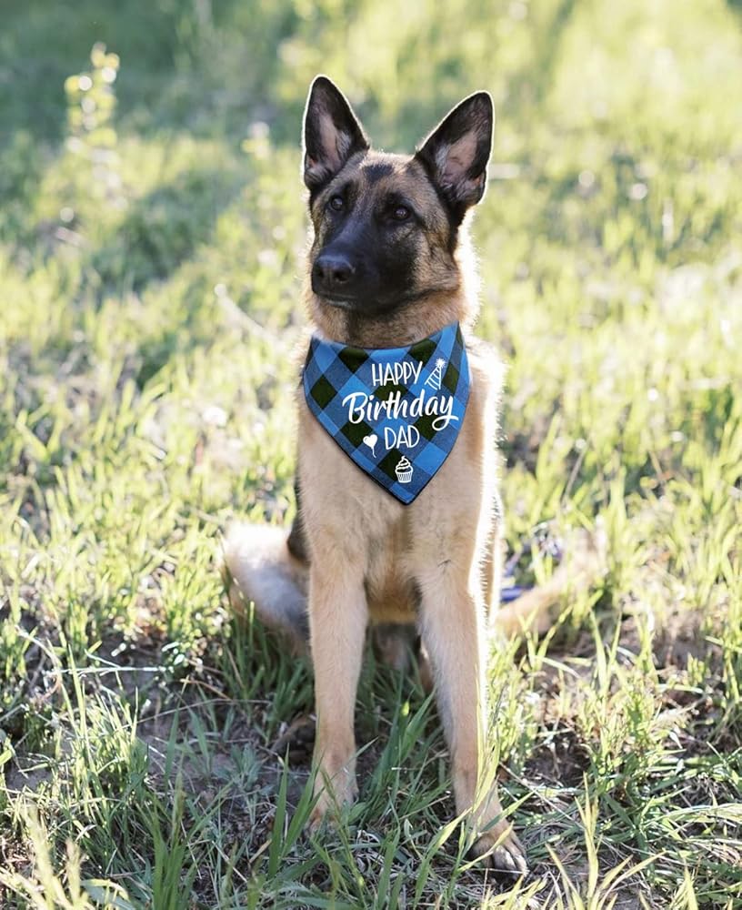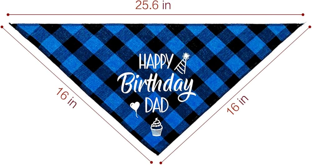 NTKIO Funny Blue Plaid Cotton Pet Dog Bandana, Happy Birthday Dad Dog Scarf Gender Reveal Photo Prop Accessories Birthday Party for Pet Dog Master Lovers Owner Gift