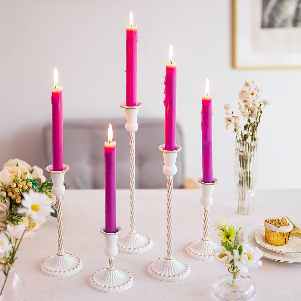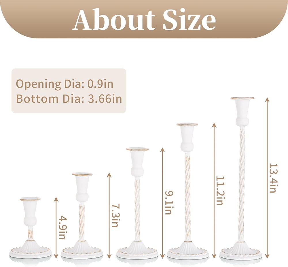 【5 قطع حامل شموع】سوف تحصل على 5 أحجام مختلفة من حامل الشموع للشموع. الارتفاع 13.4 بوصة/34 سم، 11.2 بوصة/28.5 سم، 9.3 بوصة/23.5 سم، 7.1 بوصة/18 سم، 4.9 بوصة/12.5 سم. قطر القاعدة 3.7 بوصة/9.3 سم، قطر الفتحة 0.9 بوصة/2.3 سم. أحجام متنوعة صغيرة أو كبيرة لإضافة لمسة مرحة للديكورات.