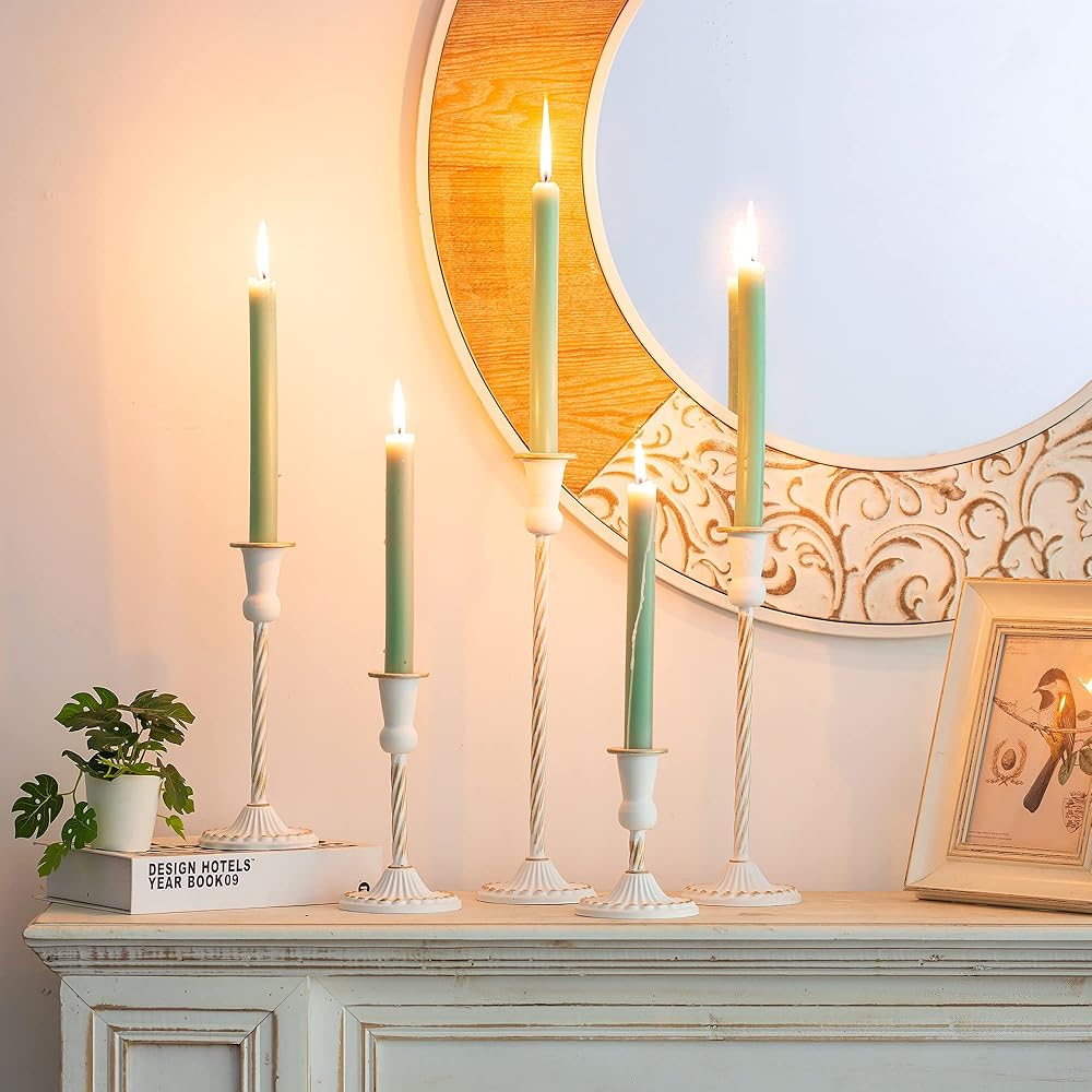 【جودة فاخرة】مصنوعة من مواد معدنية عالية الجودة. سطح غير لامع وتصميم معدني مصقول بتقنية الرسم. إضفاء جو دافئ ورومانسي على حفلاتك أو العشاء على ضوء الشموع. حامل شموع Sziqiqi طويل مناسب لعصي الشموع مقاس 3/4 بوصة أو الشموع المدببة.