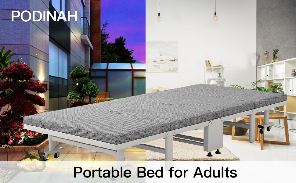 سرير قابل للطي مع مرتبة للبالغين من PODINAH، سرير ضيوف محمول قابل للطي مع 5 أوضاع مسند ظهر قابل للتعديل، سرير متدحرج بإطار فولاذي مقوى قابل للطي، مثالي للمكتب والمهاجع والتخييم