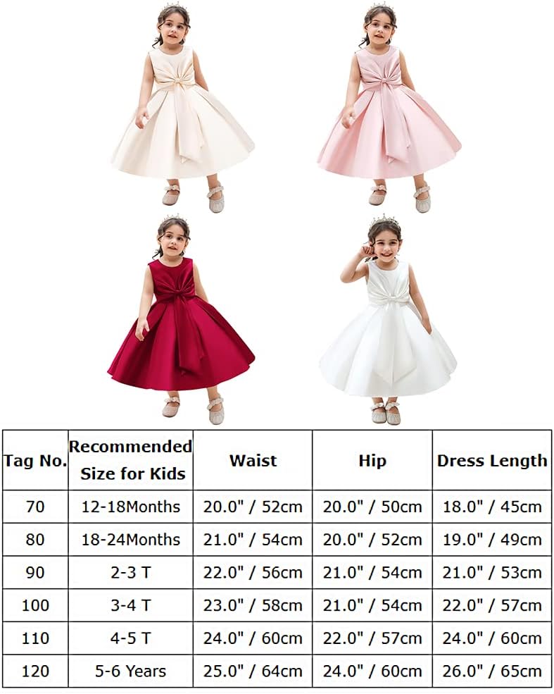 The sleeveless and round neck solid color dress is simple but classic, bringing girls the comfortabl wearing experience. The bodice decorated with a big bowknot, a stylish design, makes your girls more elegant and attractive. Hidden zipper at back makes it easy to wear. With a detachable bowknot belt at back, the dress is more beautiful than other dress, Total 3 layers of the pretty hemline, consist of 1 layer satin, 1 layer hard mesh and 1 layer soft cotton lining