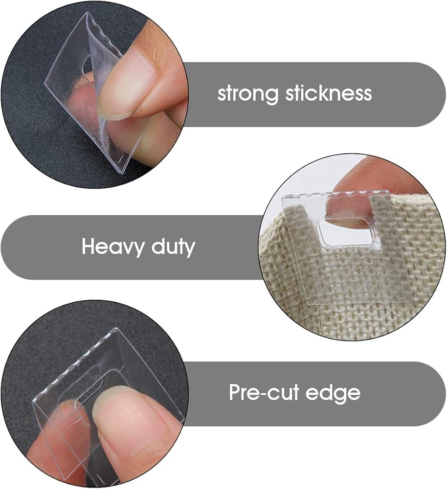 تأتي عروات التثبيت العمياء ذاتية اللصق مغلفة مسبقًا بصمغ فائق الالتصاق لخلق ثبات قوي على ستائرك تدوم طويلاً. ما عليك سوى تقشير الطبقة الخلفية ولصقها على شريط الإصلاح على طول الخط الأوسط وطيها على الجانب الآخر.