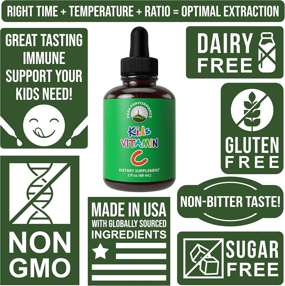 مذاق رائع، وفعالية عالية، وأقصى قدر من الامتصاص - يمكن لطفلك الآن الحصول على فيتامين C الذي يحتاجه دون الطعم المر. ما عليك سوى مزج هذه القطرات في العصير أو الحليب أو حتى الماء وسيحبها طفلك! يعتبر Peak Performance Kids Liquid Vitamin C مكملاً طبيعيًا من حمض الأسكوربيك.