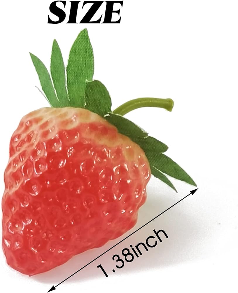 • تبدو الفراولة الصناعية حقيقية ونابضة بالحياة، وصلبة ومتينة للغاية. تأتي كل فراولة مزيفة مع جذع قصير وورقة خضراء متصلة في الأعلى.
