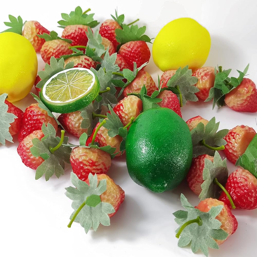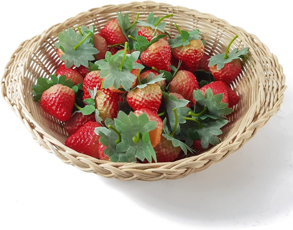 روهو 45 قطعة من الفراولة الاصطناعية محاكاة واقعية من البلاستيك للفراولة المزيفة لتزيين غرفة الاطفال وديكور حفلات الزفاف والمهرجانات والتصوير الفوتوغرافي وسلة العرض