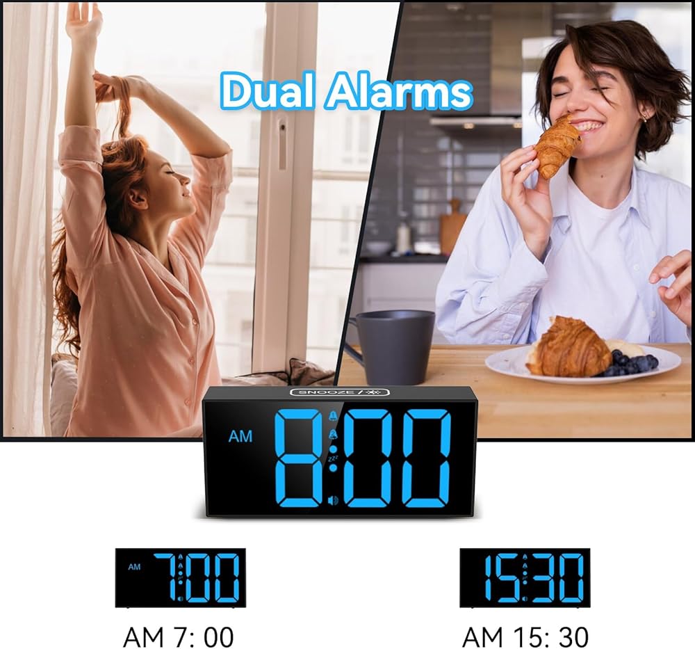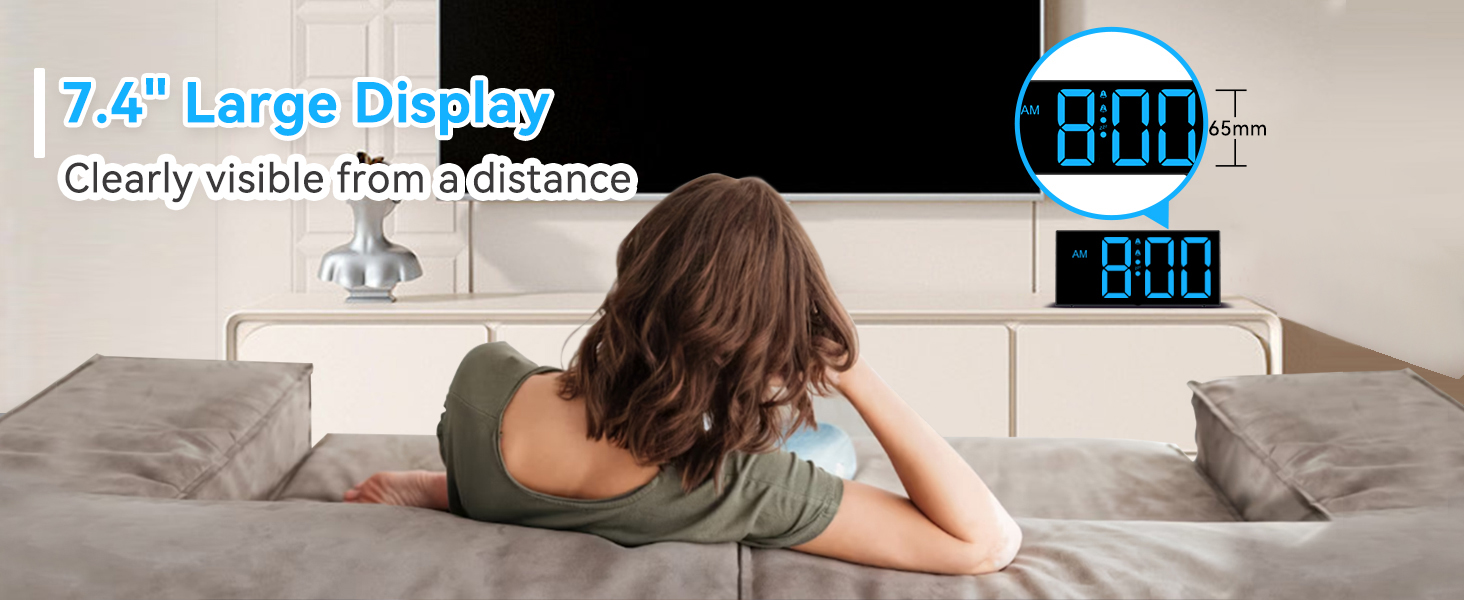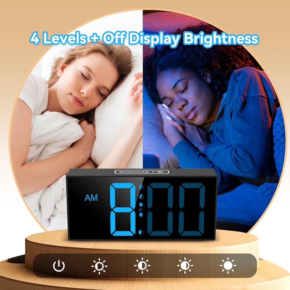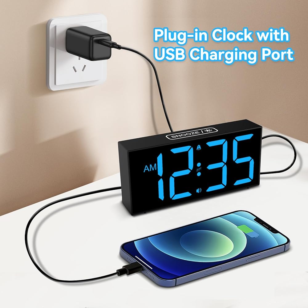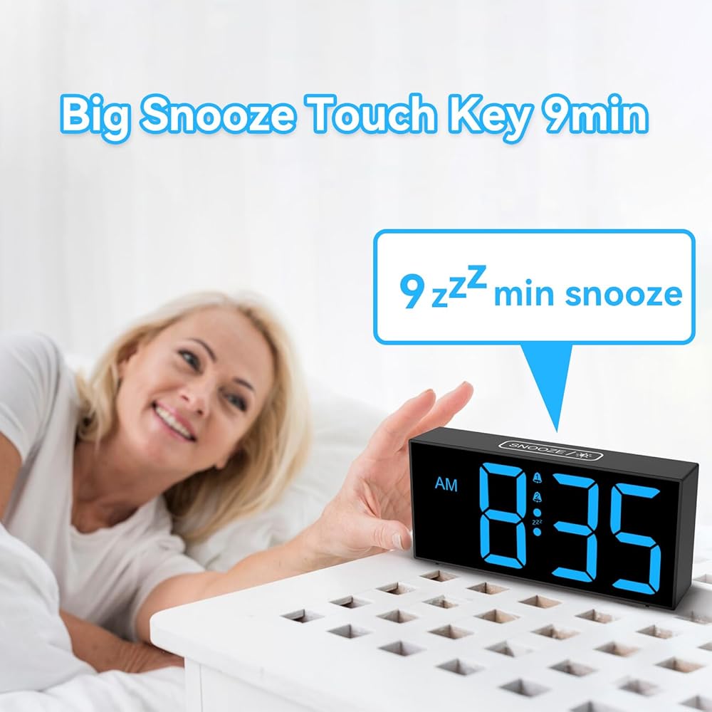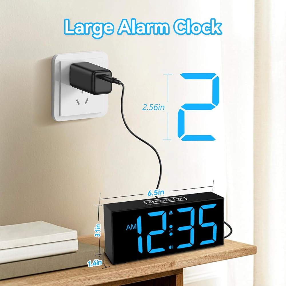 ساعة منبه مع شاشة LED زرقاء كبيرة - يبلغ ارتفاع الأرقام 2.56 سم ويسهل رؤيتها من جميع أنحاء الغرفة، حتى إذا لم تكن لديك رؤية مثالية. تتميز ساعات المنبه بشاشة عرض كبيرة جدًا، مما يجعل من السهل التحقق من الوقت بنظرة واحدة. لا مزيد من التحديق أو إجهاد عينيك فقط لمعرفة الوقت.