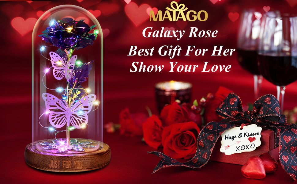 【عبوة صندوق هدايا رائعة】- زهرة ورد جالاكسي MAIAGO مع صندوق هدايا أسود رائع وبطاقة تهنئة مدروسة. إنها بالتأكيد فكرة رائعة للمفاجأة أو التعبير عن حبك. هدايا الورد الأبدية الجميلة تمثل الحب إلى الأبد، ويمكن أن تساعدك على التعبير عن قلبك. إنه مثالي لأي عشاء رومانسي أو حفلة أو مناسبة خاصة. مدعوم من 3 قطع بطاريات AAA (غير مدرجة).