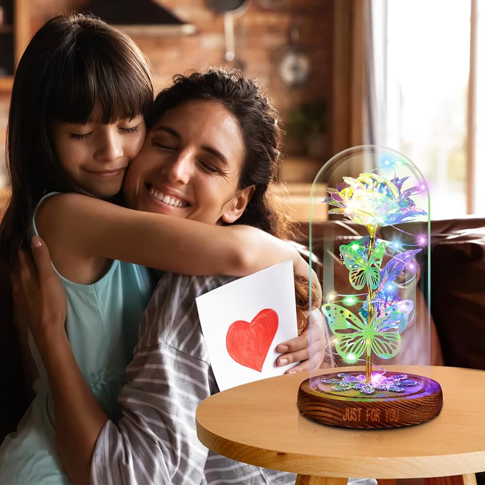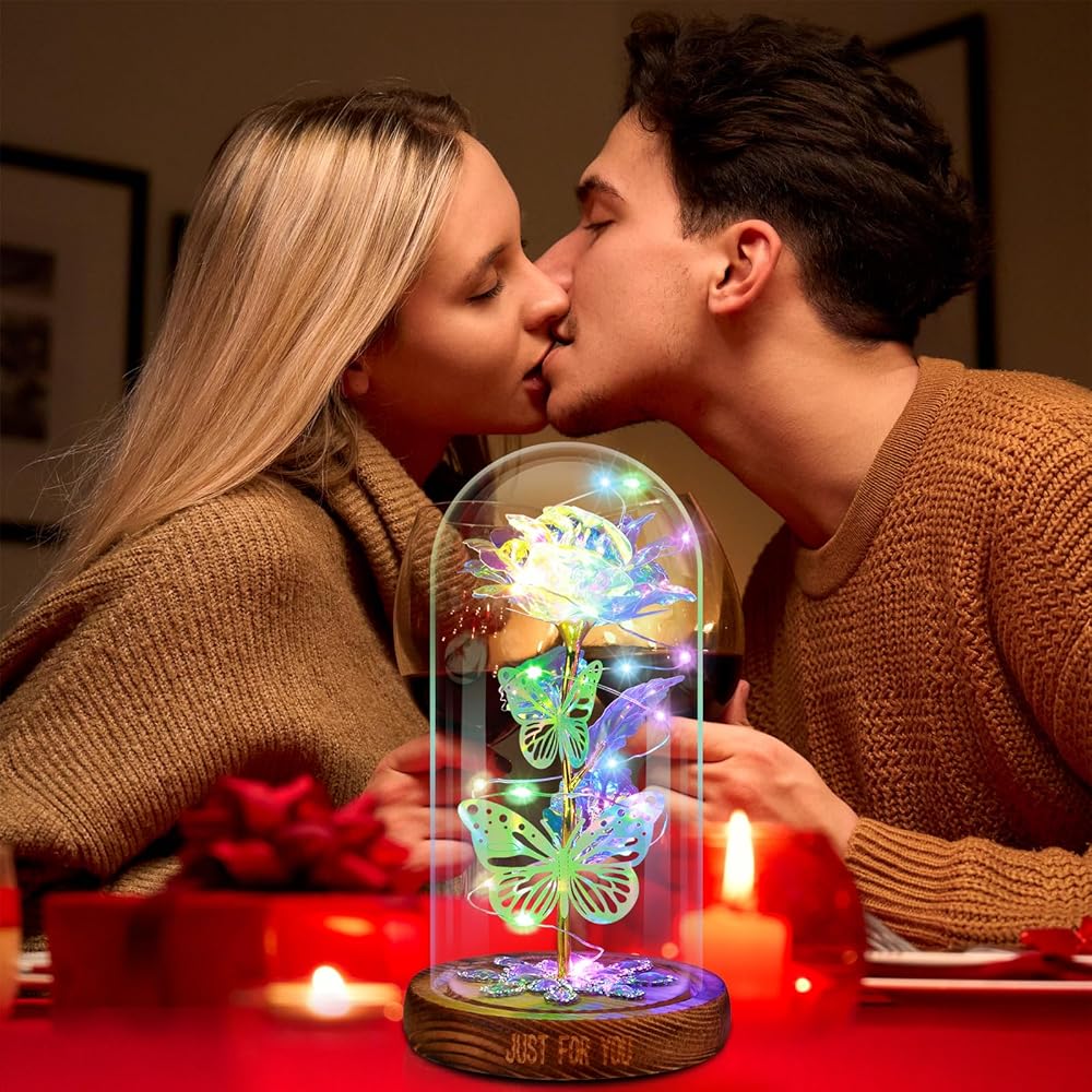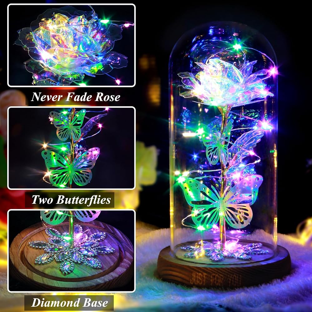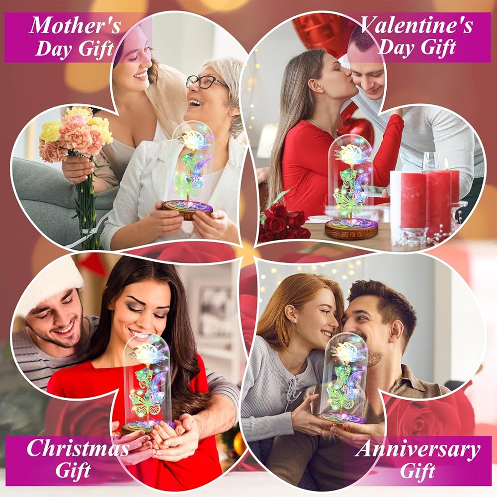 【المزيد من اختيار هدايا الورد لها】- نحن نقدم خيارات ألوان متعددة، بما في ذلك الأرجواني والأزرق والأحمر والوردي والملون. كل لون له سحره ومعناه الفريد. هذه الوردة الذهبية التي لا تبهت أبدًا في القبة الزجاجية تمثل الإيمان بالحب للأبد. الوردة الزجاجية هي هدية رومانسية لعيد الأم، هدية الخطوبة، هدية الذكرى السنوية، هدية عيد الميلاد، هدية عيد الميلاد، هدية عيد الحب، والتي ستخلق بيئة مفاجأة ورومانسية.