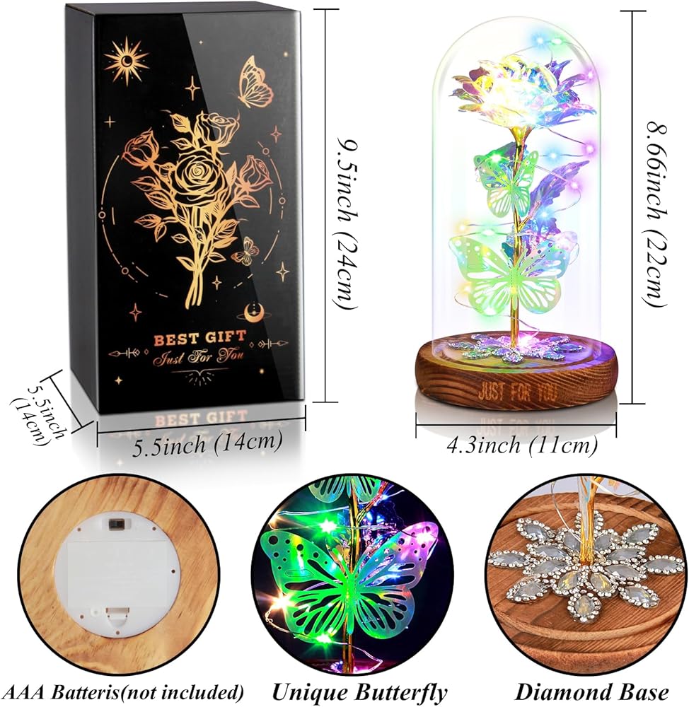 【ديكور الفراشة وقاعدة الماس البتلة】- القبة الزجاجية الخاصة بنا مصنوعة من زجاج بوروسيليكات عالي، أكثر شفافية وجمالاً، 360 درجة تقدر جمال المجرة بالكامل. القاعدة مصنوعة من الخشب المتفحم بدون سطح أملس للنتوءات. الحجم: 8.3 بوصة * 4.3 بوصة. ورود المجرة المتلألئة مع قاعدة من الماس البتلة تجعل القبة الزجاجية بأكملها لامعة ورومانسية وأنيقة. فقط من أجلها، من أجل من تحب، اسحب على أوتار قلبها!