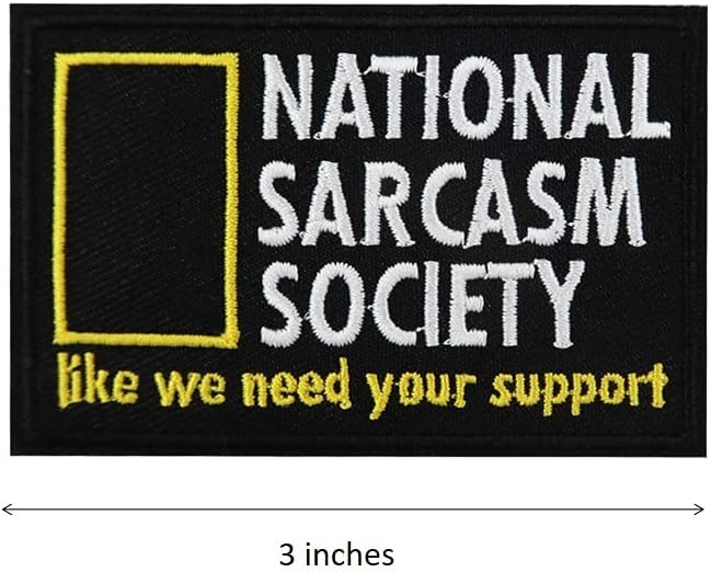 If you're a fan of sarcasm and humor, you'll love this embroidered iron on patch. This patch features the logo of the National Sarcasm Society and the words “Like We Need Your Support” in white on a black background, making a witty and ironic statement. It's a great way to show off your sarcastic side and make people laugh, or to poke fun at yourself and others. You can easily apply this patch on any fabric with a hot iron or a sewing needle. This patch is made of quality polyester material that won't fade or fray, so you can wear it with confidence.