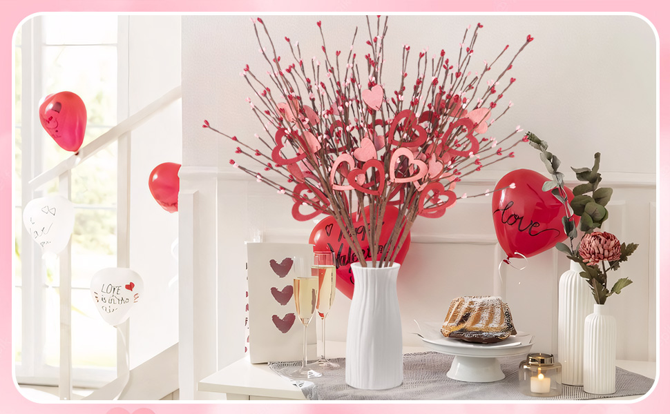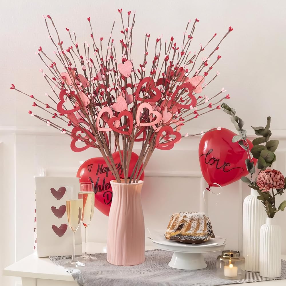 Cute Style: Each realistic Valentine's Day picks filled with wooden red & pink heart shape berries . Soft touch, vibrant color and bendable stem adds a touch of Valentine to your display.