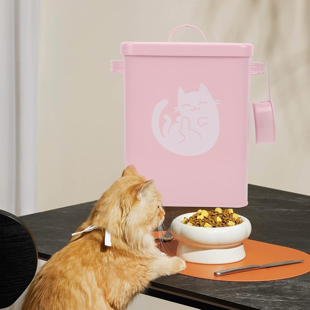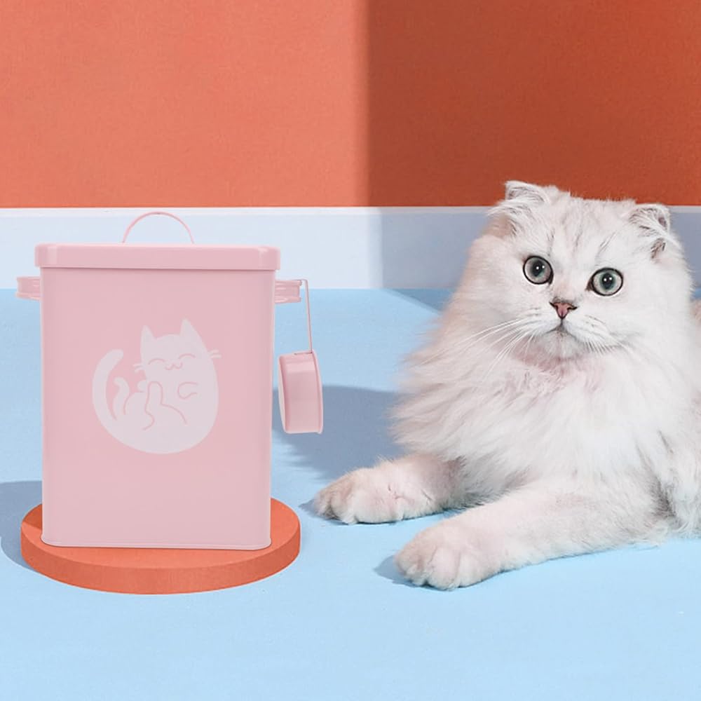 كابيلوك حاوية تخزين طعام القطط المعدنية محكمة الغلق للكلاب والحيوانات الاليفة، دلو من القصدير مع غطاء، مغرفة طعام جاف لمالكي الحيوانات الاليفة