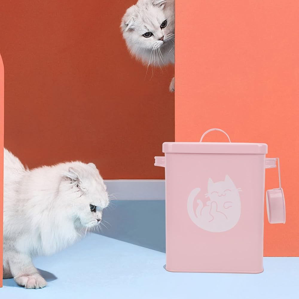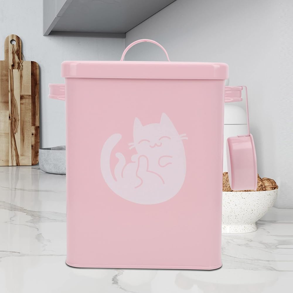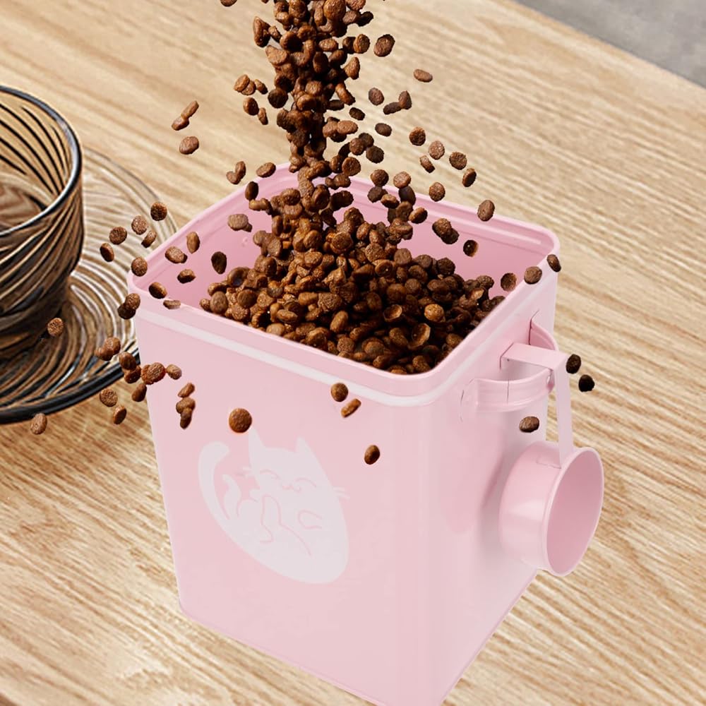حاوية تخزين طعام القطط المعدنية محكمة الغلق للكلاب والحيوانات الأليفة دلو من القصدير مع غطاء مغرفة طعام جاف لمالكي الحيوانات الأليفة