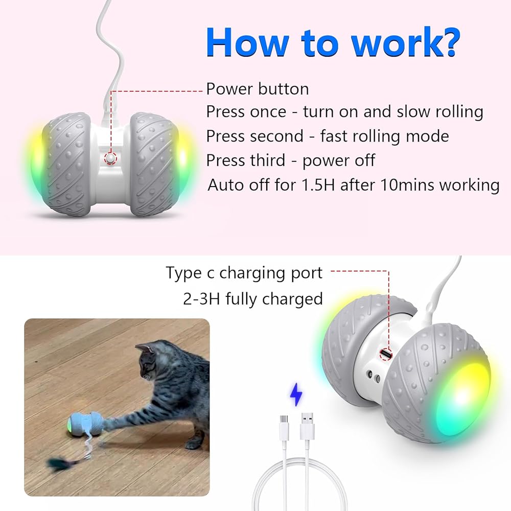 قابلة لإعادة الشحن باستخدام مبدل هاتف قياسي من النوع USB C... لا مزيد من استبدال البطاريات الفارغة! أفضل ألعاب القطط للقطط المنزلية، القطط ذات الطاقة العالية!