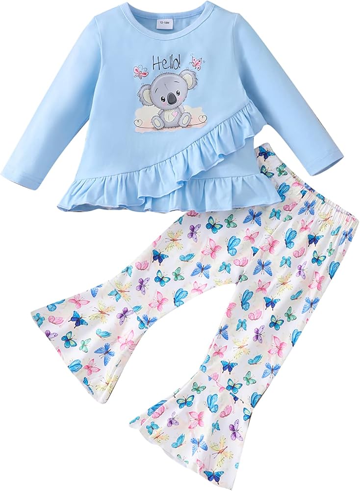 • ❤تصميم لطيف: ملابس لطيفة للغاية للفتيات الصغيرات الرضع مكونة من 3 قطع، قميص بأكمام طويلة ومكشكش مع عقدة على شكل فيونكة، لطيف ومريح، وسوف تحب الفتيات الصغيرات الملابس.