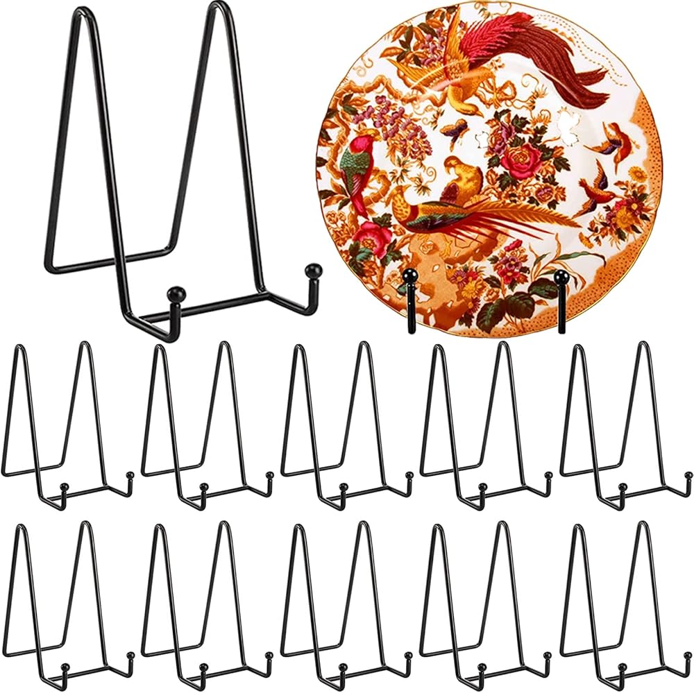 NDSWKR 10 Pack Plate Stands for Display, 6 Inch Iron Easel Plate Holder, Black Picture Frame Stand Holder for Pictures, Book, Photo, Dish, Tablets, Art