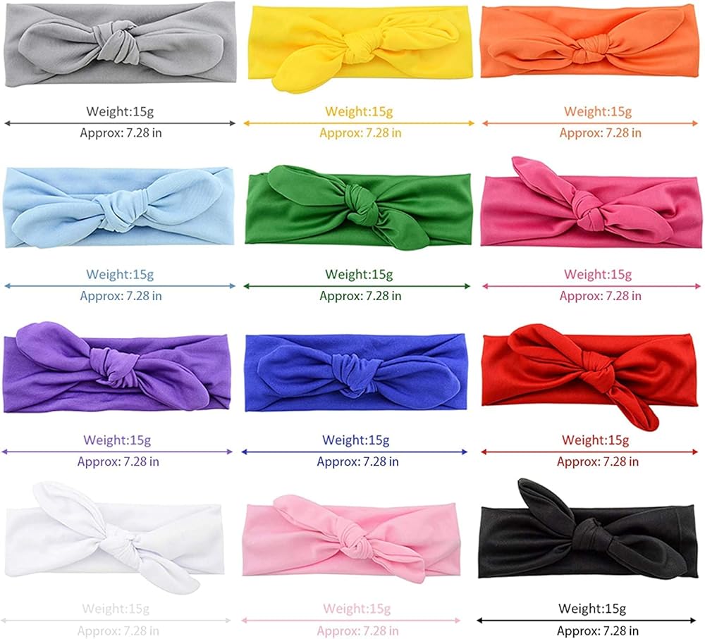 محتويات العبوة: 12 قطعة من عصابات الرأس المرنة للأطفال الصغار مع فيونكات