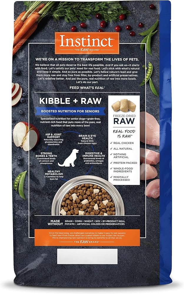 • OUR BEST DOG FOOD FOR SENIORS BOOSTED WITH RAW: We craft dry & wet dog food from real ingredients. Compare Instinct to Blue Buffalo, Rachel Ray, Hills Science Diet, Purina One, Taste of the Wild, Merrick, Natural Balance, Wellness, Orijen, Royal Canin.