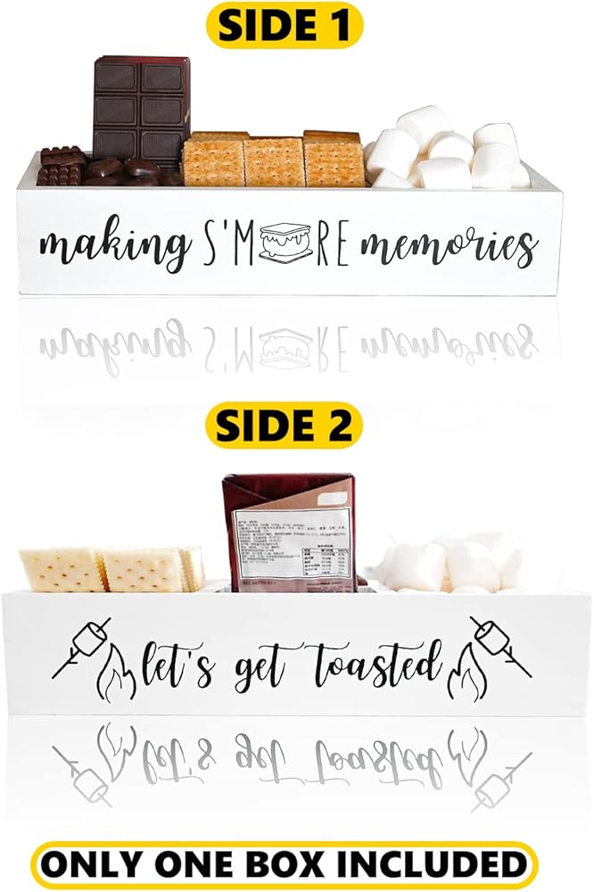 نمط المزرعة --- تم تصميم صندوق S'more بكلمات لطيفة ورقيقة على كلا الجانبين، أحدهما [يصنع ذكريات S'MORE] والآخر [دعنا نحمص]، صندوق التخزين الريفي هذا يمثل إضافة رائعة لمنزلك ديكور شريط الأعراف.