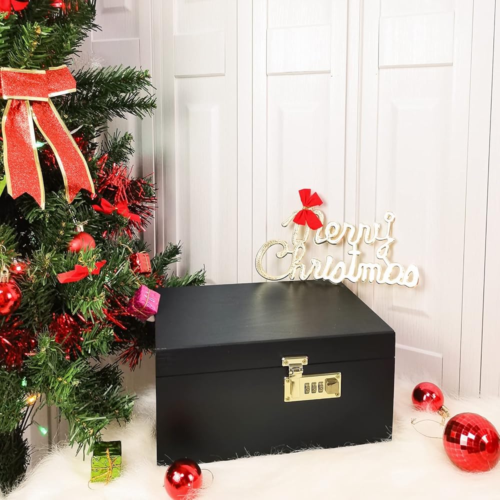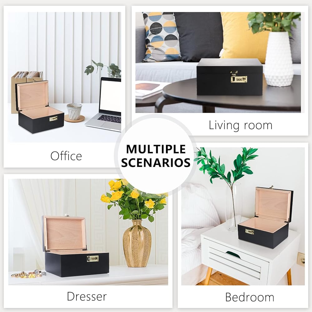 صندوق خشبي من SafeDelux مع غطاء مفصلي وقفل، صندوق تخزين مزخرف فاخر للمنزل أو المكتب، هدايا رائعة لعيد الميلاد - 11 × 8 × 5 بوصات