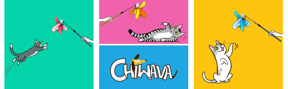 مجموعة CHIWAVA مكونة من 3 قطع مقاس 25 بوصة من عصا دعابة ذات ريش ملون للقطط مع جرس