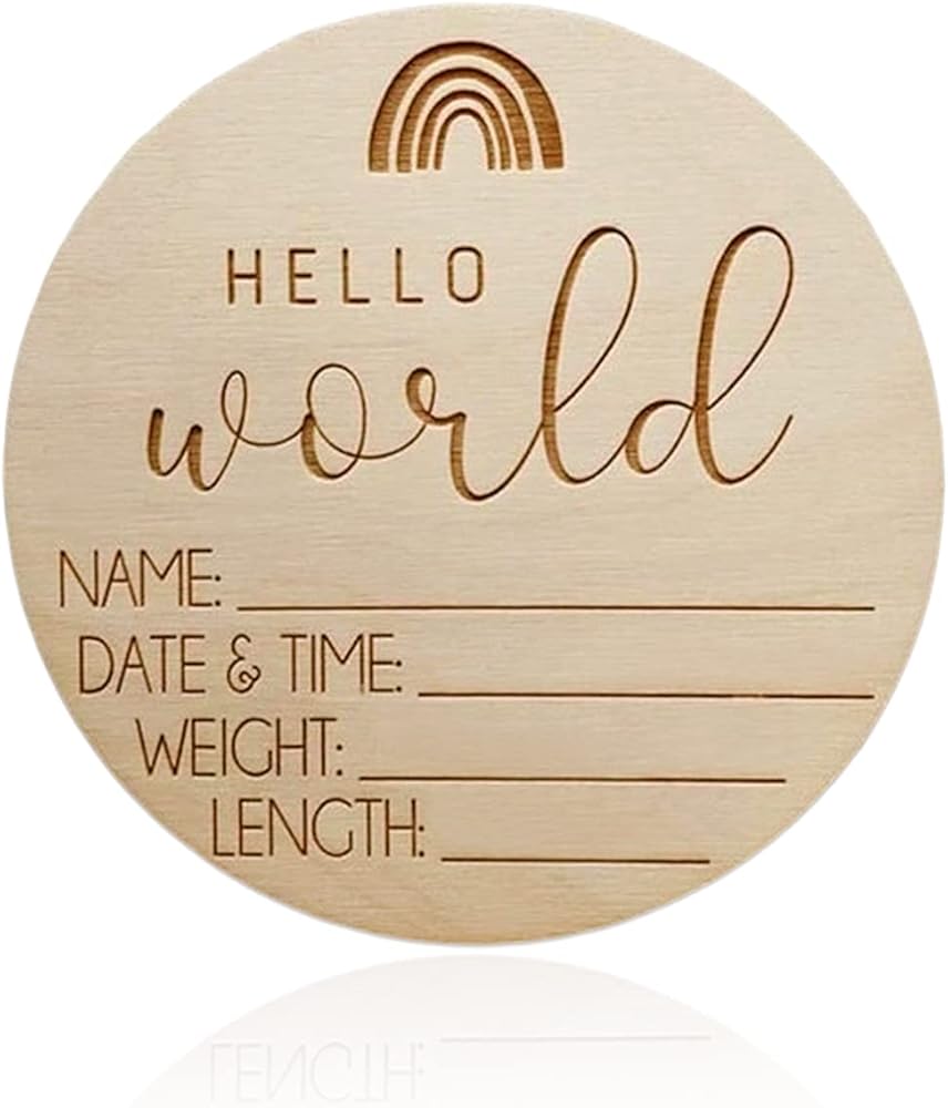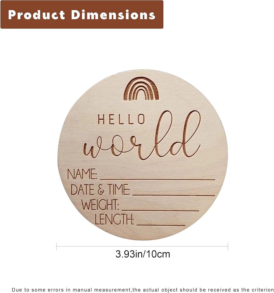 لافتة إعلان الطفل الخشبية بألوان قوس قزح - هدية Hello World لحديثي الولادة - مشاركة معلومات ميلاد الطفل - تذكار قابل للتخصيص - قطر 10 سم، سمك 0.25 سم - مادة خشبية