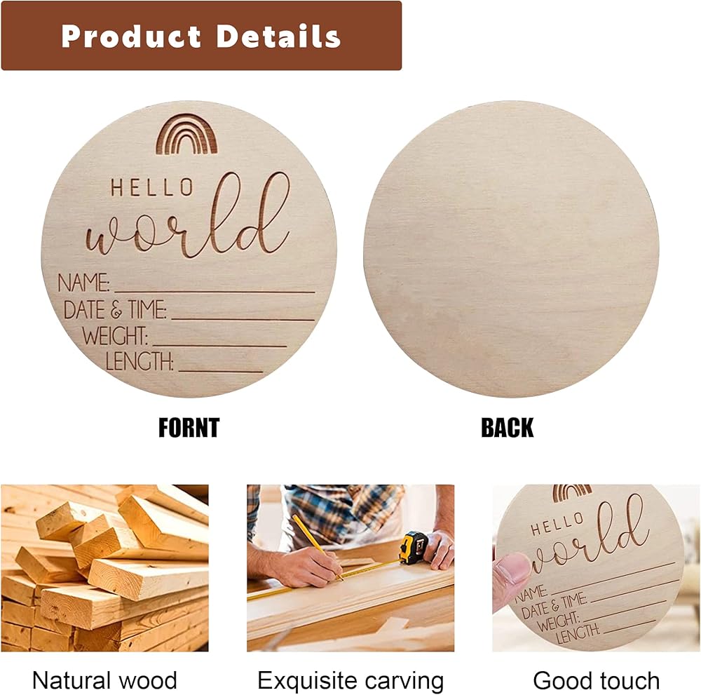 [المجموعة الدائمة]: مادة لوح إشعار الميلاد هذا هي خشب الصنوبر، وهو رائع في المظهر، قوي ودائم، بدون حواف أو نتوءات حادة، ومناسب لك للاحتفاظ بها لفترة طويلة. تتميز لافتة هالو وورلد لحديثي الولادة هذه بنمط قوس قزح ورسالة ترحيب بهلو وورلد. لافتة وصول الطفل هذه هي تذكار مثير للإعجاب وبمعنى لصنع ذكريات ثمينة.