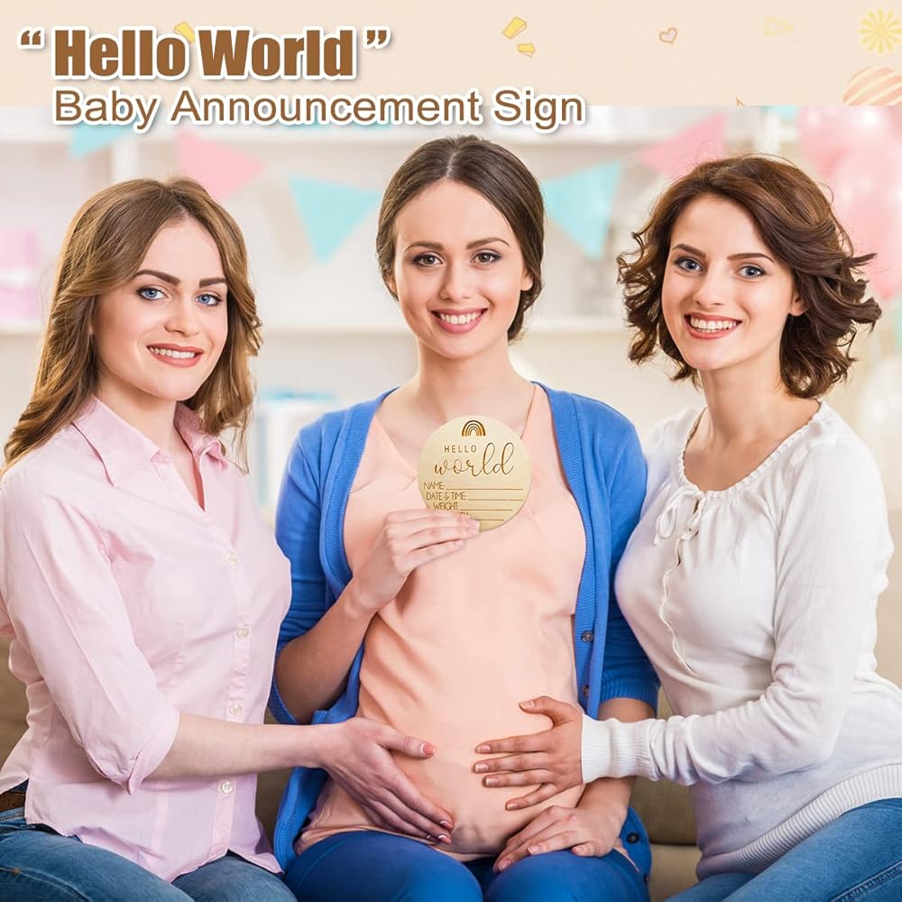 [الأمهات والآباء الجددد]: علامة إعلان طفل جميلة مع طباعة مرحبًا العالم. يمكننا استخدام قلم تحديد لتسجيل معلومات الطفل على علامة حديثي الولادة الخشبية مرحبًا، مثل طول الطفل ووزنه وتاريخ ميلاده والاسم وما إلى ذلك. هذا اللوح الإعلان عن مواليد الطفل ضروري للأمهات والآباء الجدد!