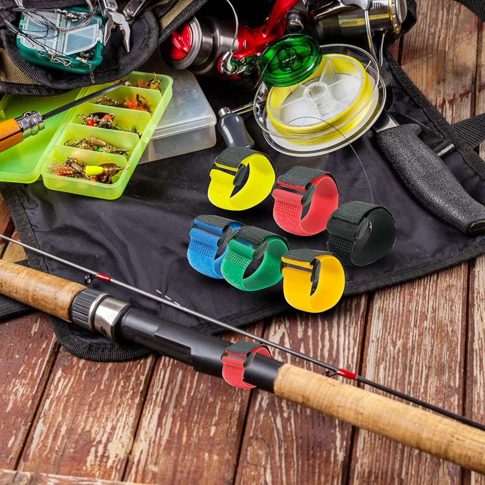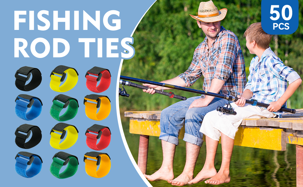 50 قطعة من أشرطة صنارة الصيد - ربطات صنارة الصيد مع ملفوف - أشرطة قصبة الصيد متعددة الألوان - حزام حامل قضيب قابل للتمدد لقضيب الغزل وقضيب الطيران وقضيب الصب وأساسيات الصيد في الهواء الطلق