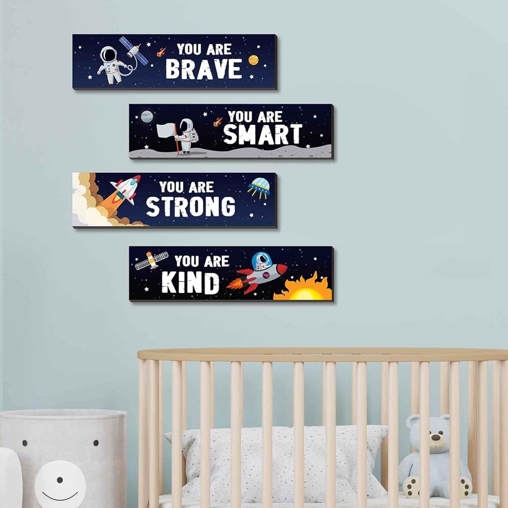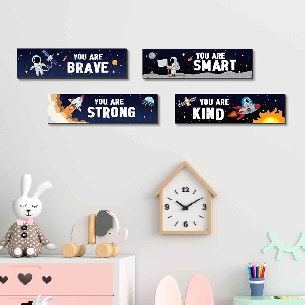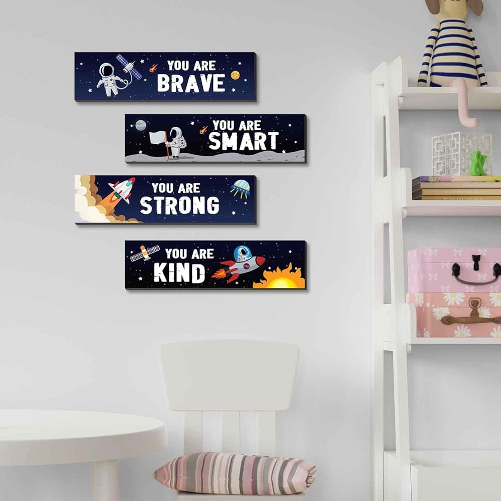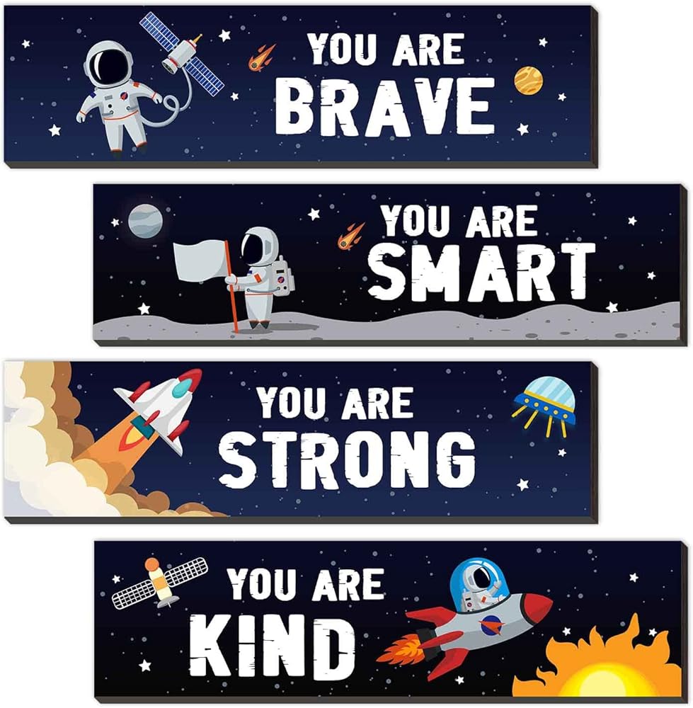4 قطع من اقتباسات ملهمة لرائد الفضاء، لافتة تعليق خشبية على الحائط، لوحة معلقة تحفيزية، لوحة فنية جدارية لغرفة الفضاء الخارجي، ديكور حضانة للفضاء الخارجي للأولاد والأطفال، ديكور غرفة اللعب والفصل الدراسي