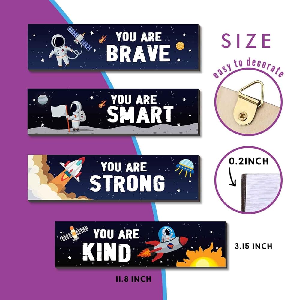 Product Information: these boys' wall decors each sign measures approx 3.2 x 12 inches, made of quality wood and 2 triangular hooks were nailed behind the board, solid and firm in construction, practical and odorless, not easily deform or break, wear and tear resistant, lightweight and convenient to hang