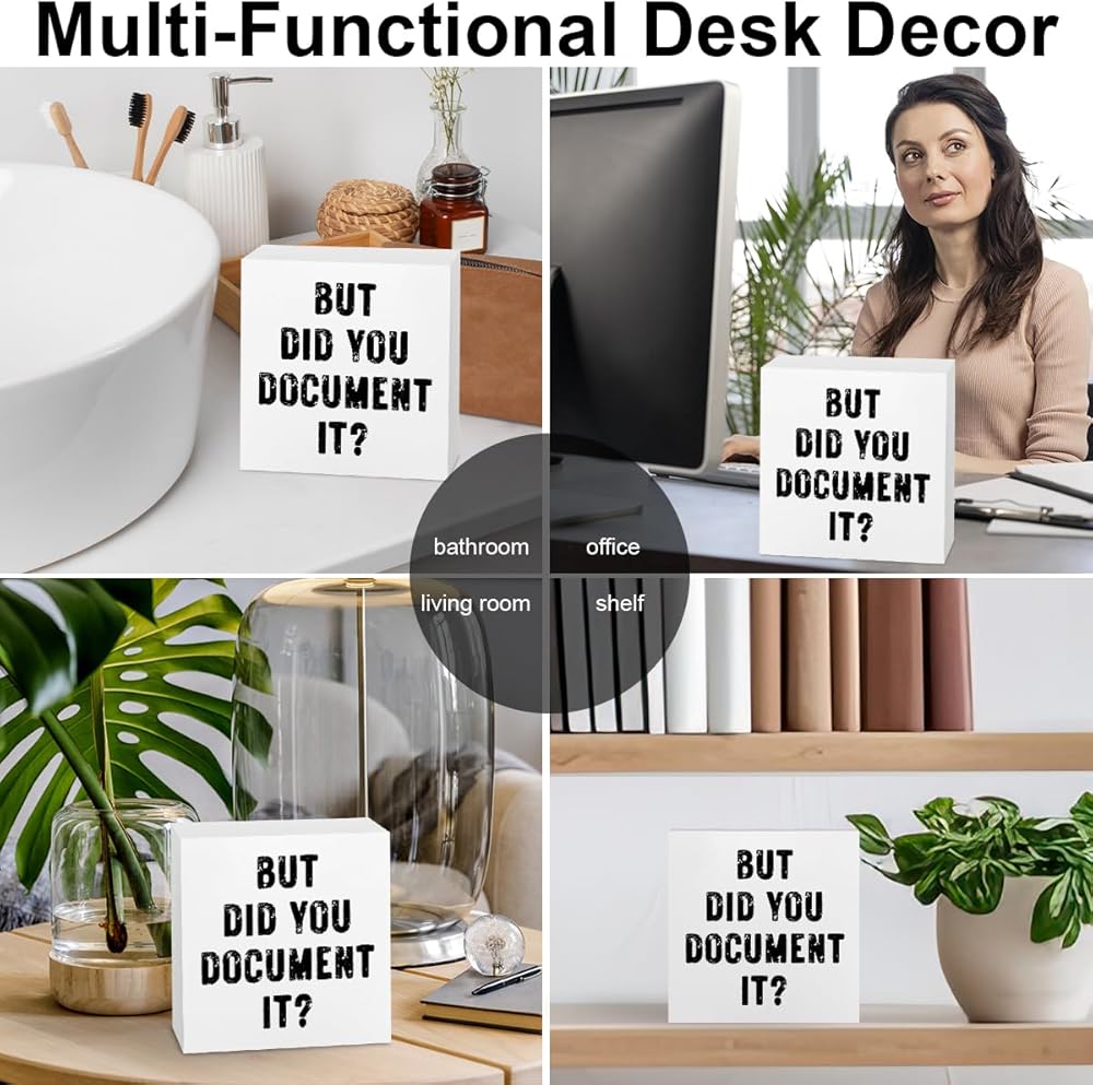 Our wooden box sign is made from high-quality wood. The wood block plaque desk accessories is a decorative funny gifts of your workspace or home. It's a cute office supplies office organization and cubicle desk accessories.Our table centerpiece wooden desk decor is a novelty gifts for coworker, friend, boss, HR, sister brother teacher or loved ones. It's perfect for birthday, Anniversary, Valentine's Day, Boss Day, Mothers Fathers Day, Thanksgiving, Halloween, Christmas, Housewarming.