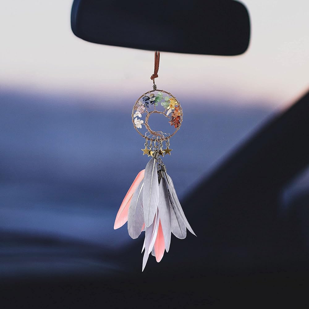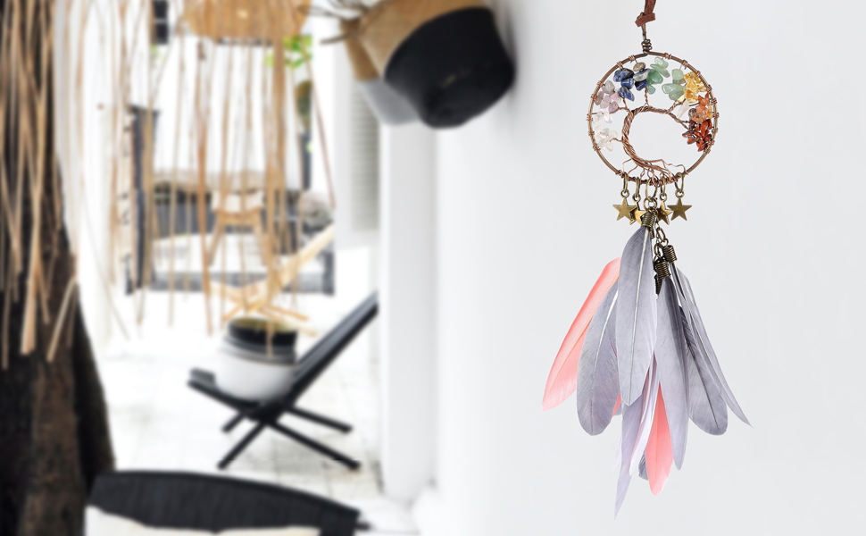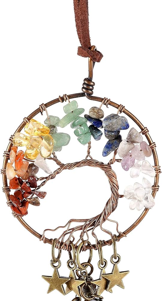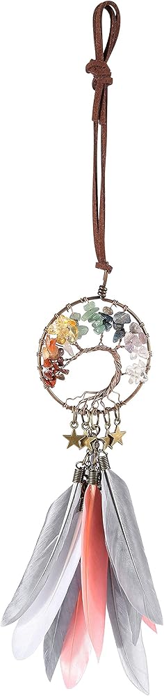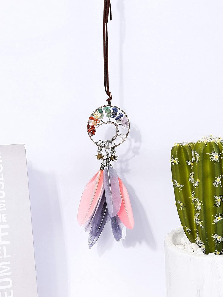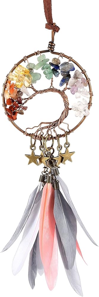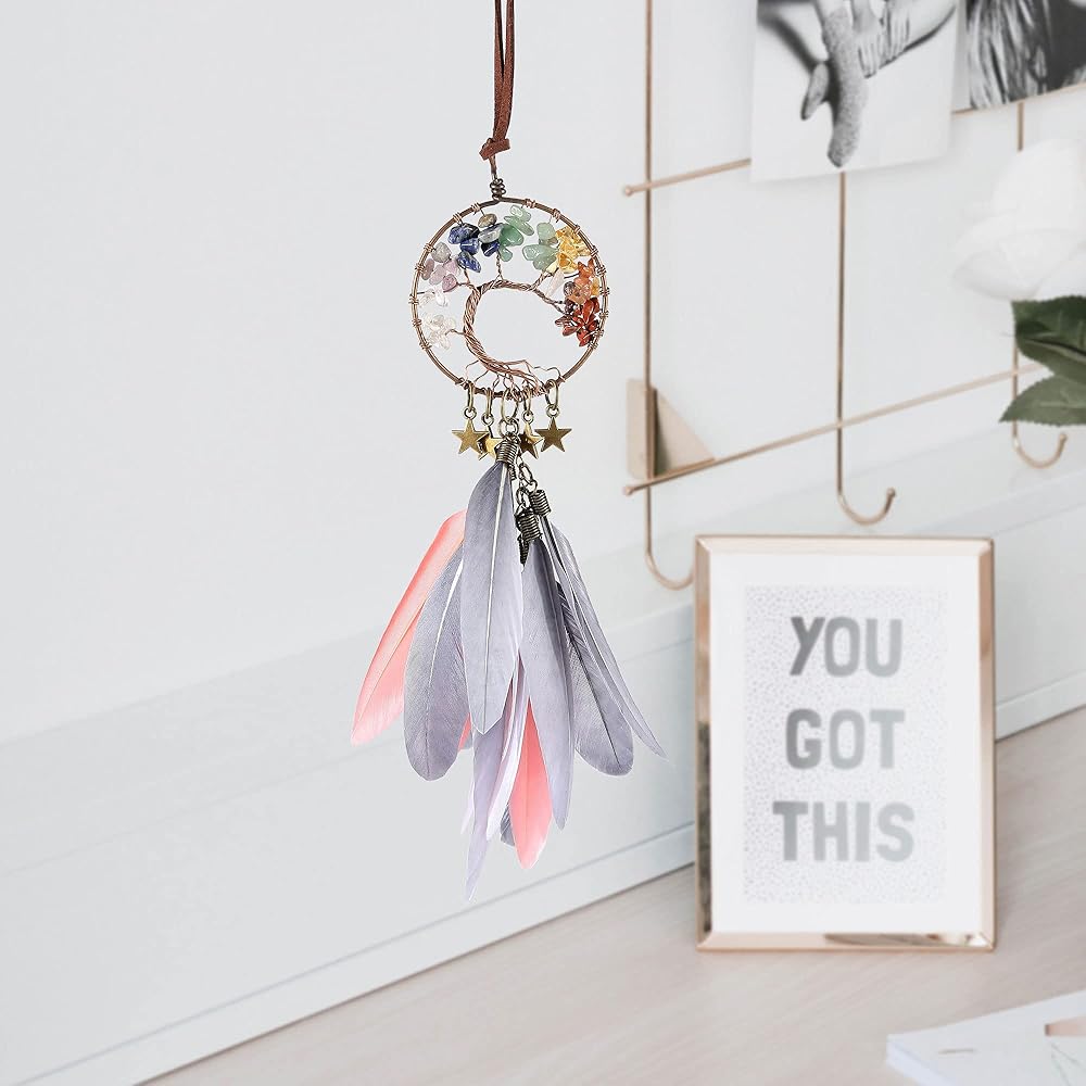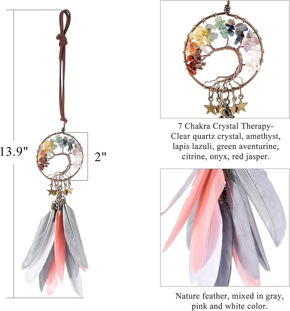 • تصميم فريد: شجرة الحياة من أحجار الشاكرا معلقة مع نجوم وريش ملون لجلب السعادة والازدهار والبركة. أنيقة لتزيين غرفتك الداخلية والخارجية. يخلق طاقة ريكي وفينغ شوي ممتازة.