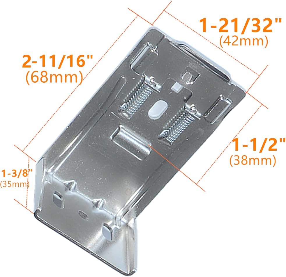 المقاس 1-3/8 انش × 2-11/16 انش × 1-21/32 انش (الارتفاع × الطول × العرض)، ومشبك الكبس 1-1/2 انش (38 ملم) مما يعني أن الطية في حاجز الرأس يجب أن تكون 1-1/2 انش (38 ملم). وإلا فلن يناسبك.