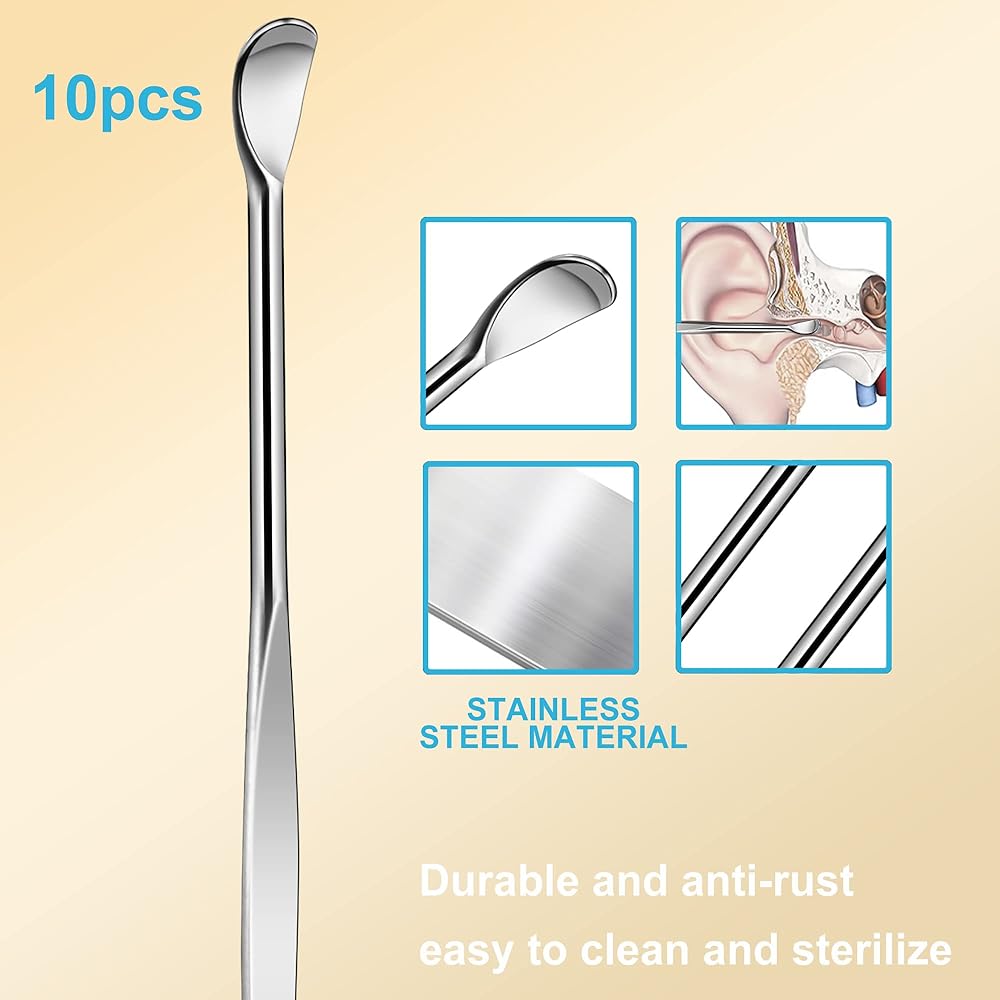 10 قطع من الفولاذ المقاوم للصدأ خلال أذني ملعقة معدنية للأذن، أداة تنظيف شمع الأذن، مجموعة إزالة شمع الأذن