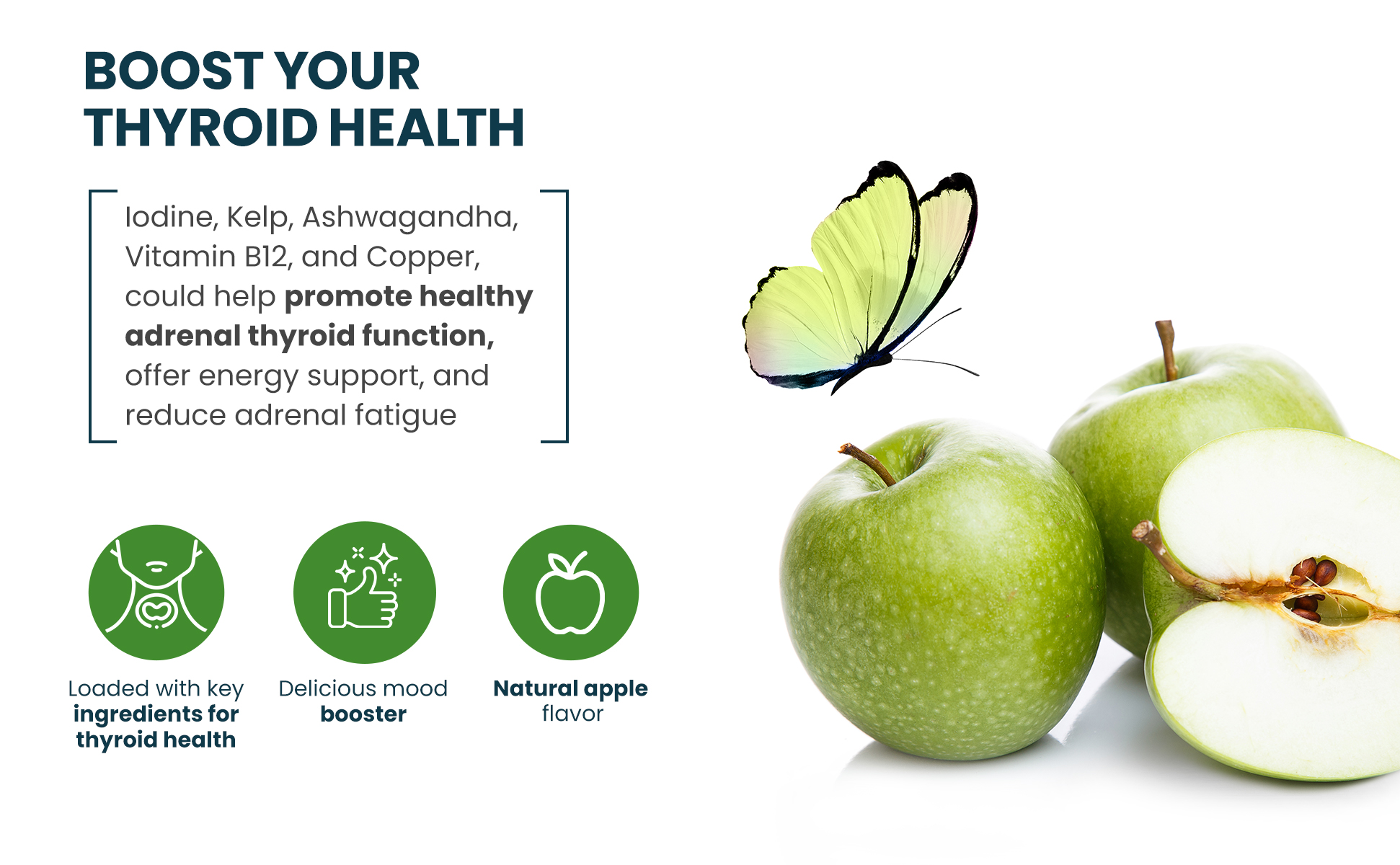 ✅ دعم الغدة الدرقية بنكهة التفاح الطبيعية مع اليود: هذا المكمل الصحي للغدة الدرقية هو الوحيد الذي يتم تقديمه على شكل علكة. إن تناول علكات الغدة الدرقية لدينا أسهل من تناول مكملات الغدة الدرقية المماثلة المتوفرة، مع شكل فراشة لطيف ونكهة التفاح اللذيذة.