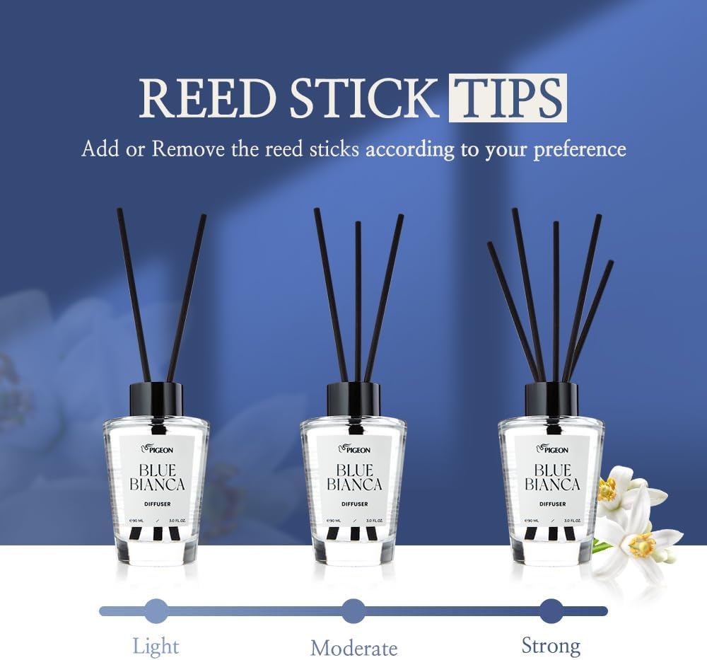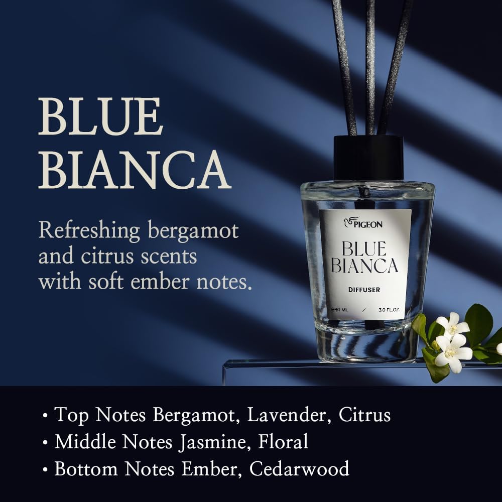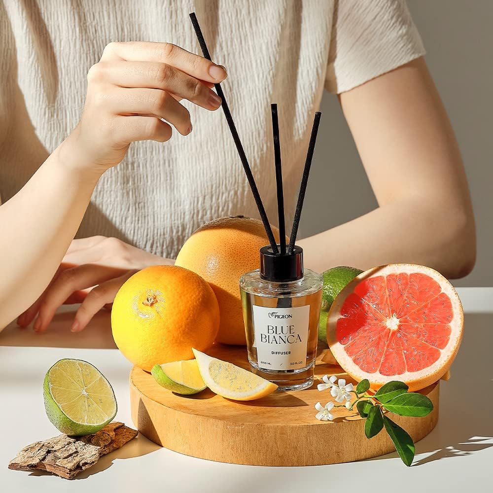 عطر يدوم طويلاً: يتميز موزع روائح القصب الأزرق بيانكا برائحة البرغموت المنعشة التي تترك مذاقًا طويل الأمد، مما يثير إحساس النسيم اللطيف. إضافة روائح الحمضيات والعنبر الناعمة تخلق عطرًا فريدًا ومبهجًا ستحبينه.