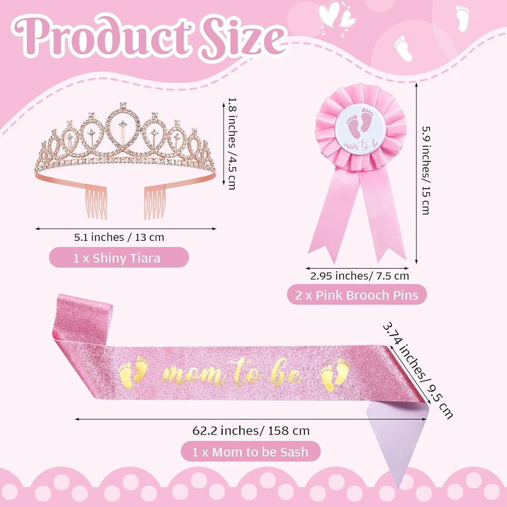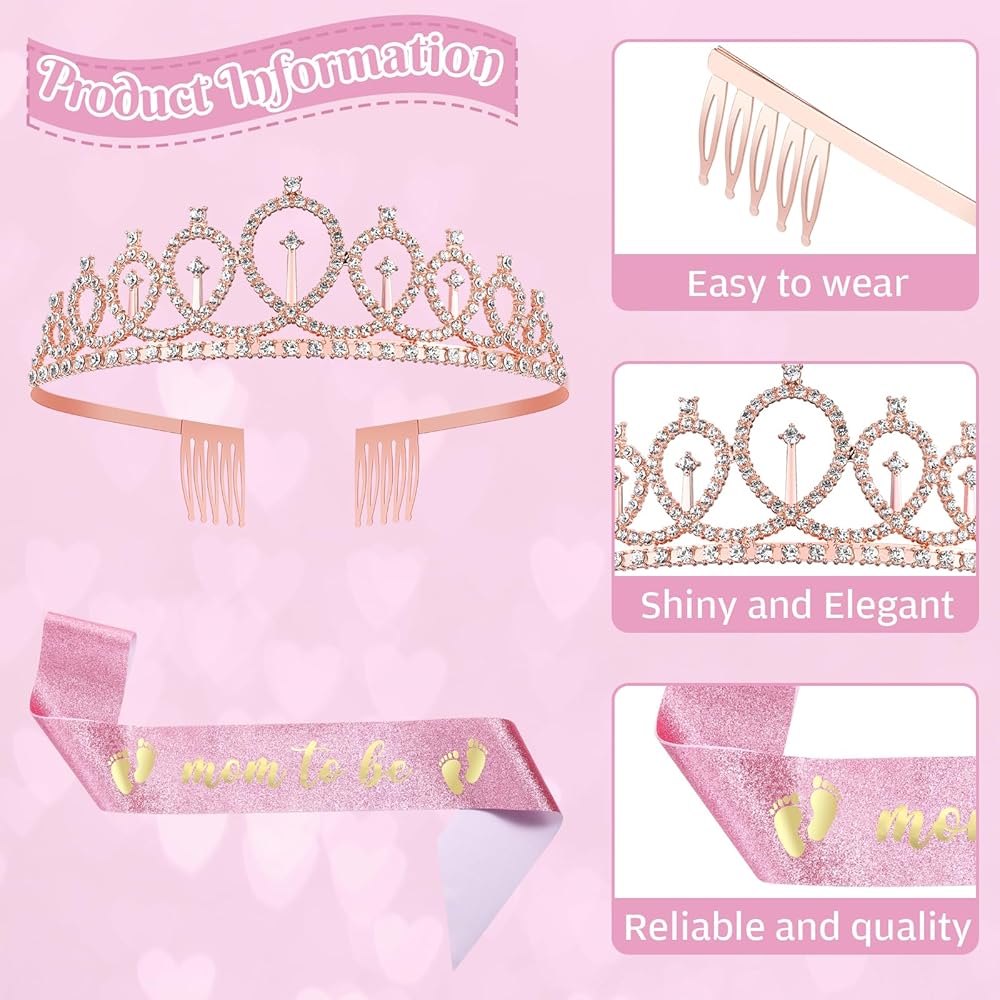 • الميزات اللامعة: تصميم الوشاح [Mom to be] مزين بحروف ذهبية لامعة وأقدام صغيرة، مما يضيف لمسة لطيفة وأنيقة إلى حفل استقبال طفلك؛ بالإضافة إلى ذلك، يتميز التاج بمشط في الأعلى لسهولة التثبيت ومنعه من السقوط