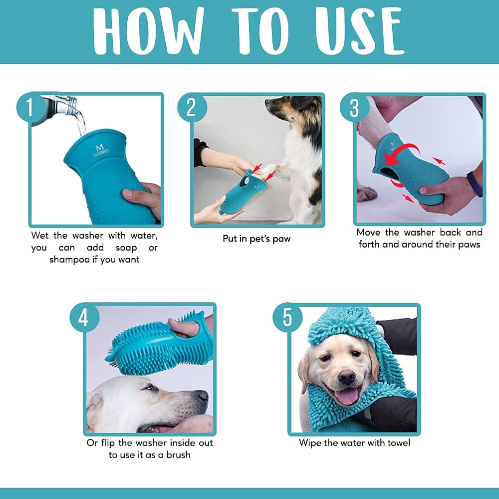 مناسبة للسلالات متوسطة الحجم مثل البيغل وبوردر كولي والسلالات الكبيرة مثل تيرير إيرديل، سامويد. من السهل وضع وإزالة أقدام حيوانك الأليف. كما أنه سهل التنظيف. مصنوعة من السيليكون عالي الجودة بالكامل، لينة، ولطيفة لكنها متينة. يتميز بمرونة وصلابة جيدة. قد تكون منشفة الكلب المنفوشة والناعمة الشيء المفضل الجديد. مصنوعة من ألياف الشنيل الناعمة فائقة الامتصاص للمساعدة في تجفيف فرائها.