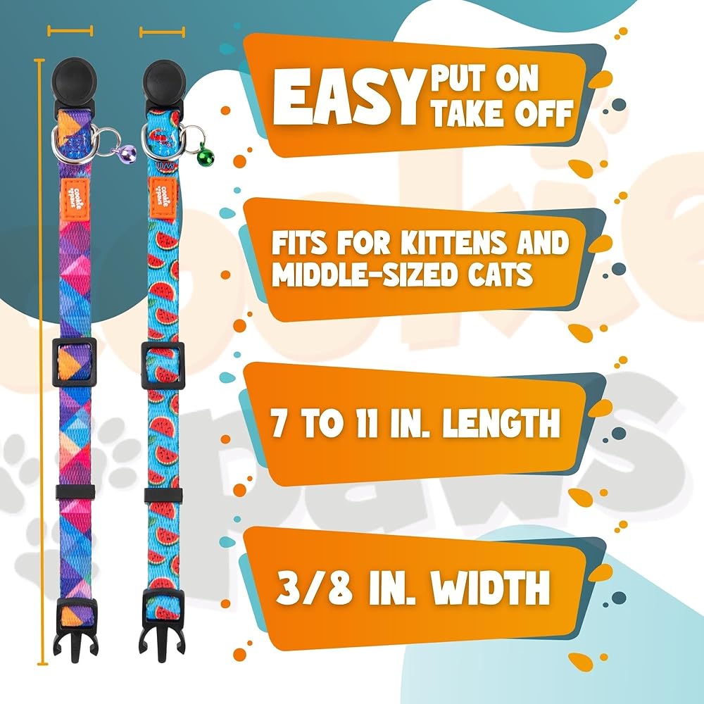 طوق قطط قابل للفصل - تم تصميم طوق القطط الصغير هذا مع وضع السلامة في الاعتبار، ويتميز بإبزيم سريع التحرير يمكن تثبيته بسهولة ويظل آمنًا، ولكنه ينكسر إذا علق طوق قطتك بشيء ما.