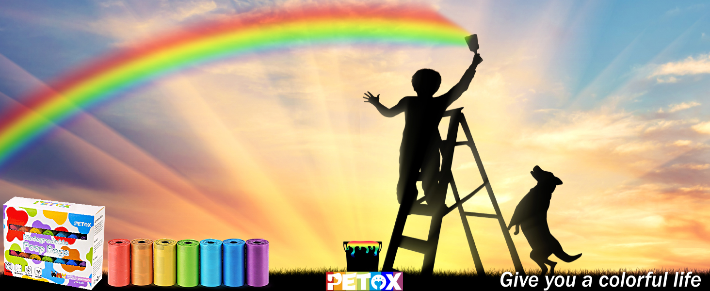 GREAT VALUE PACK Great price, Rainbow Color Dog Waste Bags total 560 (28 rolls, 20 bags per roll). This amount is enough for you to use for a long time.The Dog Poop bags refills included are two dog dispensers with leash clips on the dispensers,so you don't have to worry about having nowhere to put your dog's poop bags or losing them.